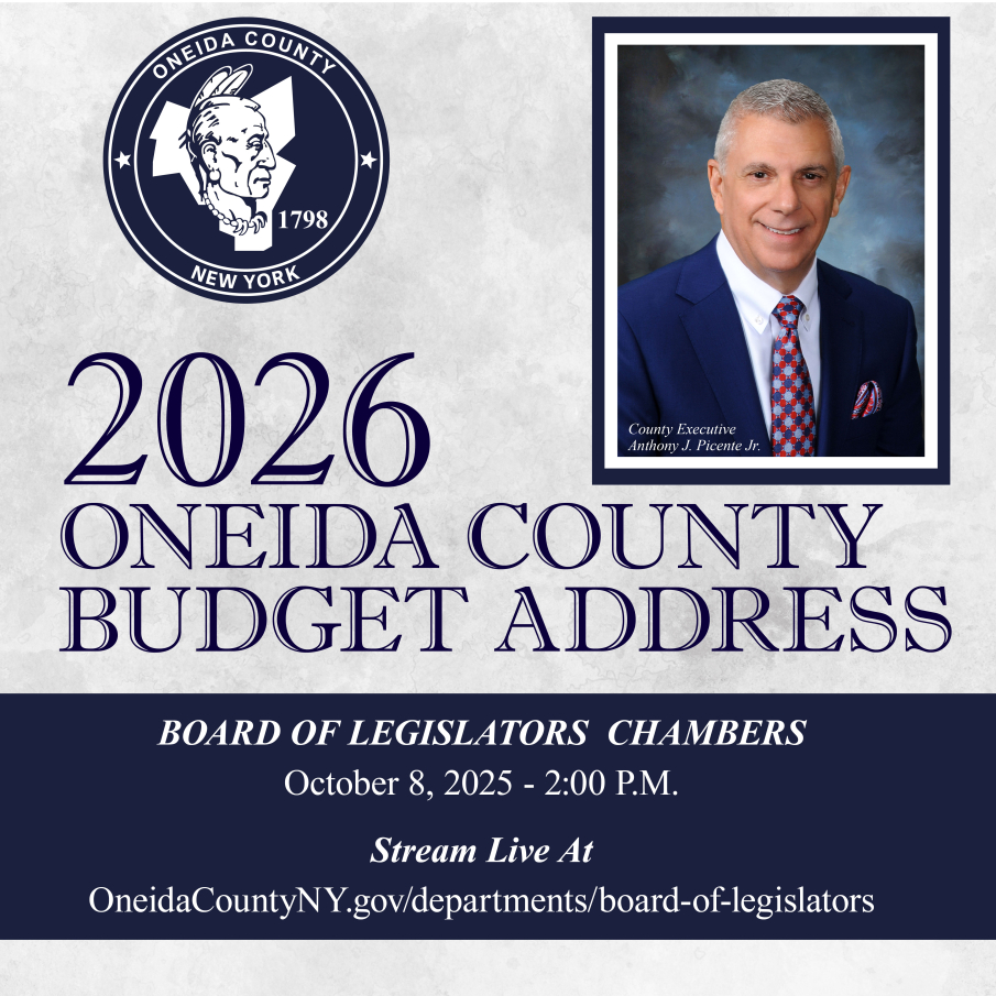 Oneida County Executive Anthony J. Picente Jr. will deliver is 2026 Budget Address at 2 p.m. on Oct. 8, 2025.